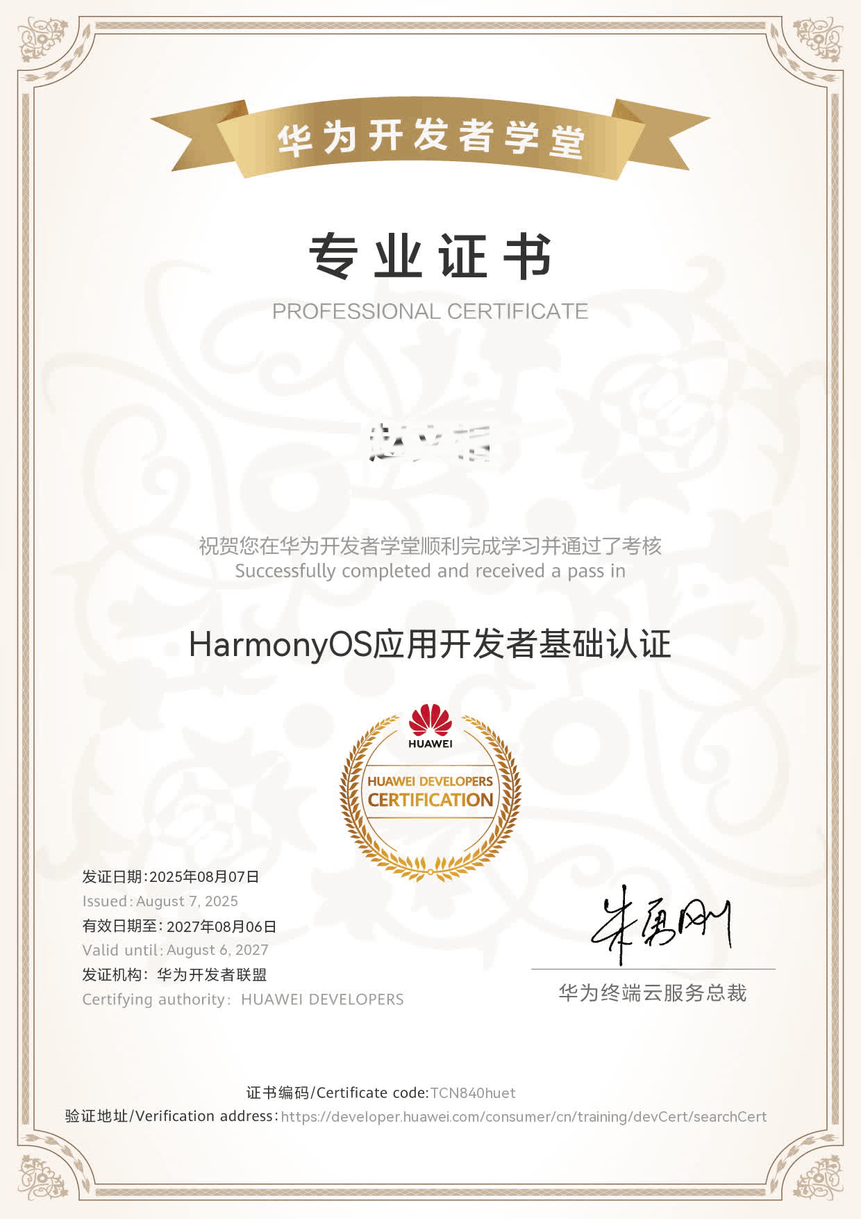 后来我试着写学习笔记,第一篇是《HarmonyOS_ArkTS语法入门》,发布到CSDN时,我紧张得反复检查排版,生怕写错一个知识点。没想到第二天收到了第一条评论:“新手能看懂,感谢分享”,那天我对着手机乐了好久,之后入门(二)(三)陆续发布。我开始尝试鸿蒙应用开发者初级认证——可现实很快给了我“下马威”:第一次82分,第二次85分,第三次83分,每次查分都差一点到90分的及格线。第三次查完成绩有点泄气,可瞥见桌上写满笔记的本子,“再学一段时间就行了,别太急”,我对自己说。