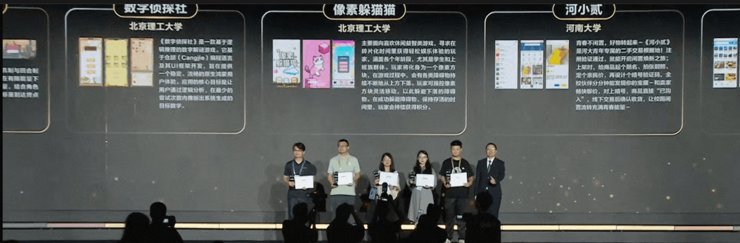 一周后,我们超预期的完成了项目,老师也带着我们的作品去参与大会分享。在直播中,当主持人念出“活力开源鸿蒙技术俱乐部”的获奖名单,听到我们学校名字的那一刻——那些熬夜的日子、查bug的焦虑、互相鼓励的瞬间,都在这一刻有了最好的回报。