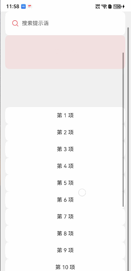 从图上来看,当手指在内部的Scroll滑动时只能滑动内部的Scroll,在外部Scroll滑动时,只能滑动外部的Scroll,这和我们的需求不符合。 - 第三部分的物品卡片没有展示出来。