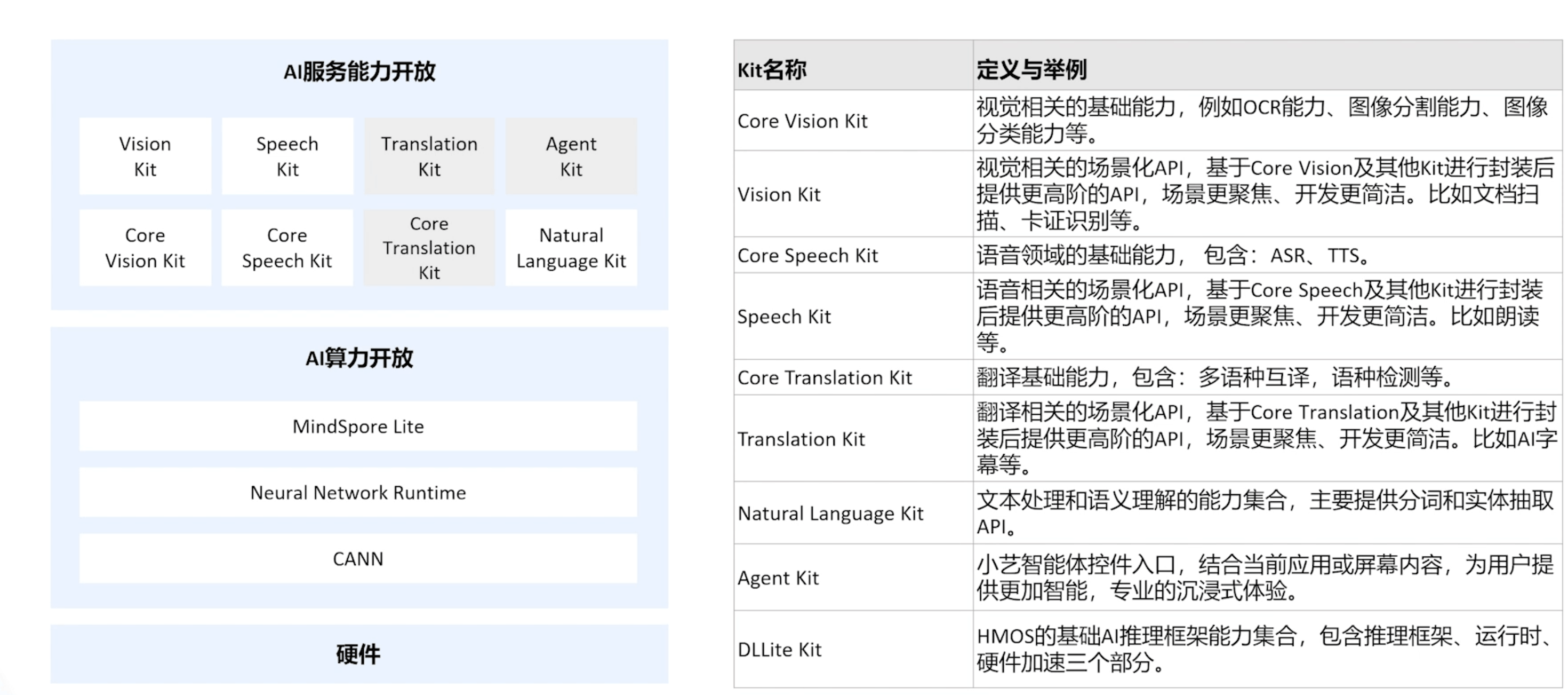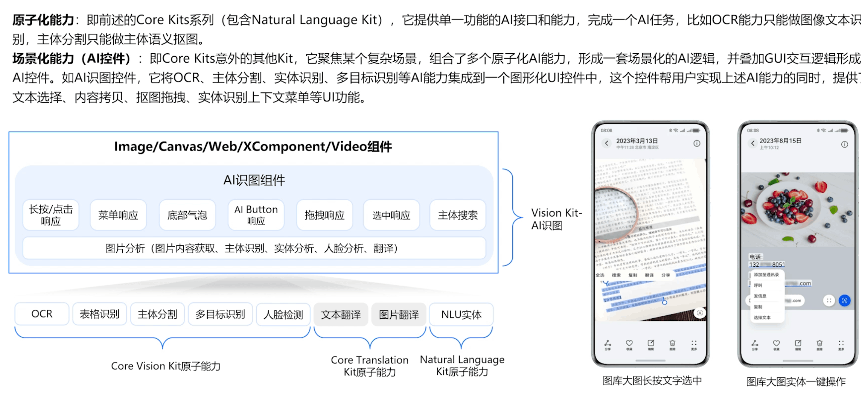 以视觉为例,我们通过Core Vision Kit和Viseion Kit两层对我们开发者开放,Core Vision Kit提供了原子化的能力,像OCR、图像分割分类等能力。