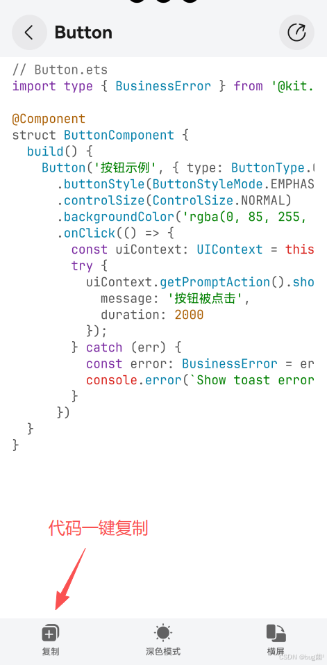 下面是我从 HMOS 代码工坊App,交互模式里学到并移植的一段“参数—预览—代码同步”的最小演示(简化版本,用于思路展示):