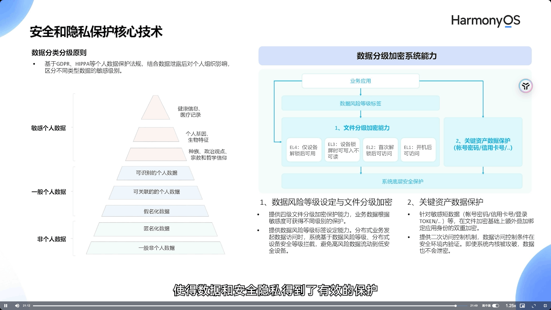 HarmonyOS构建了全面且强大的安全和隐私保护体系,通过数据分类分级精准界定不同敏感程度的数据并采取差异化的加密与管控措施;依托分布式安全技术保障多设备间数据传输的安全可靠;以形式化验证的内核和运行环境隔离机制强化系统内核及应用运行的安全防线;借助隐私控制、数据最小化、匿名化和假名化等手段全方位保护用户隐私;同时,完善的安全更新和漏洞管理机制确保能及时修复漏洞,持续为用户数据安全与隐私保驾护航。