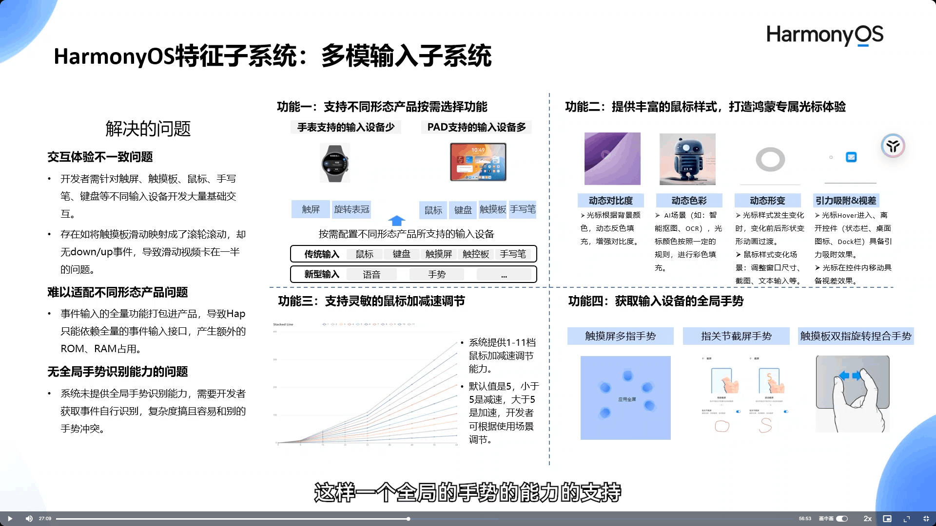 HarmonyOS的多模输入子系统,以其全面而细致的功能设计,极大地提升了用户的交互体验。它不仅支持触屏、鼠标、键盘、手写笔等多种输入设备的按需选择与配置,更通过丰富的鼠标样式和鸿蒙专属光标体验,为用户带来视觉与操作的双重享受。此外,该系统还独具匠心地获取输入设备的全局手势,无论是触摸屏的多指操作,还是指关节的截屏手势,都极大地丰富了用户的交互方式,使得操作更加直观便捷。