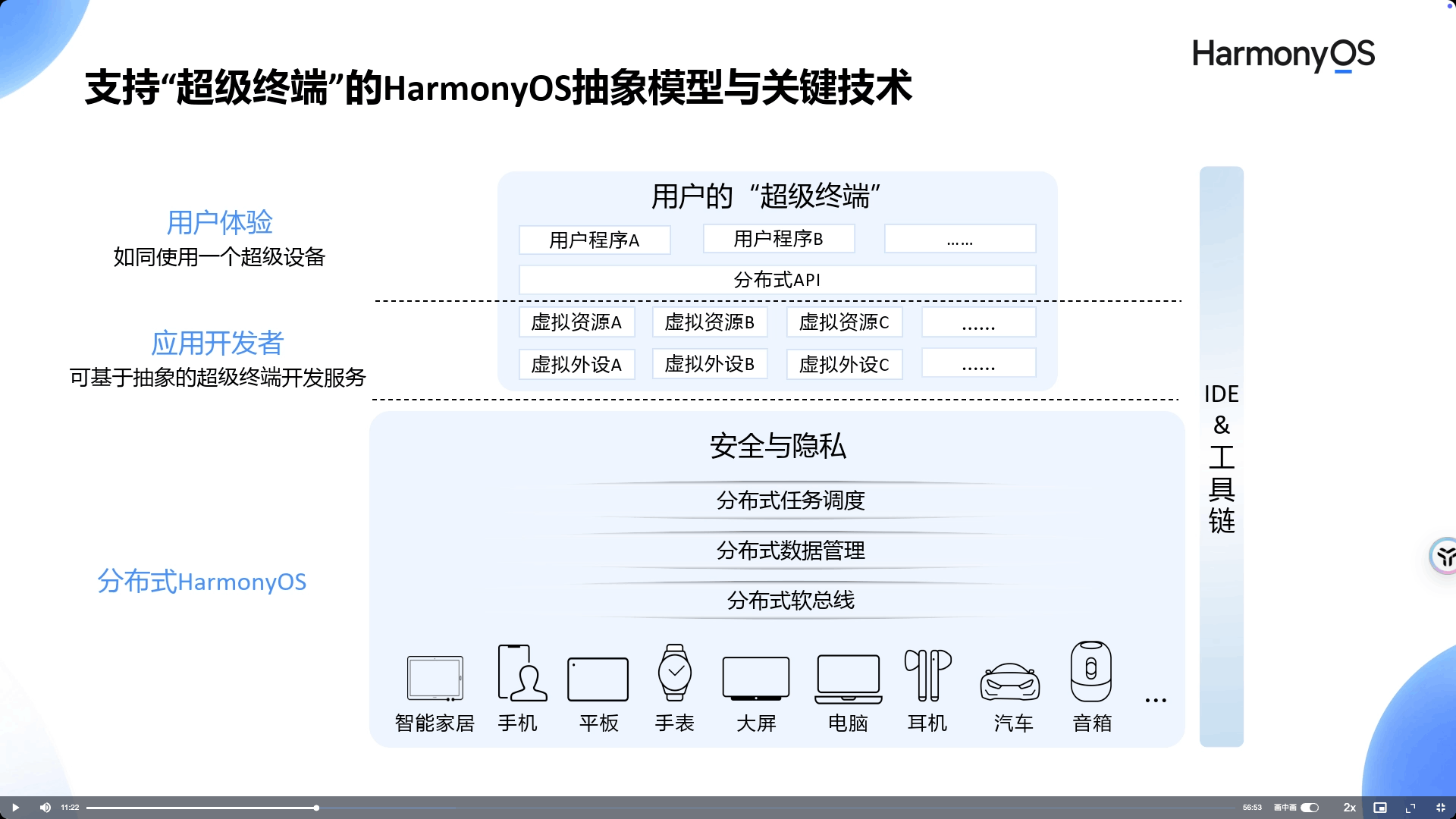 当时我在笔记本上随手写下:“鸿蒙要怎么破局?跟着 iOS 做封闭,还是跟着安卓做开放?” 直到专家话锋一转,提到 “鸿蒙的架构设计从源头就避开了‘单一生态对抗’的思路”,我才突然顿悟 —— 原来它从一开始就没打算在 “单设备赛道” 上与对手较劲,而是选择用 “分布式架构” 打通所有设备的边界。这个 “换赛道” 的思路让我印象极深,甚至忍不住倒回课程录像再看了一遍,那种 “原来还能这么想” 的豁然开朗,也让我对后续的技术解析充满了期待。