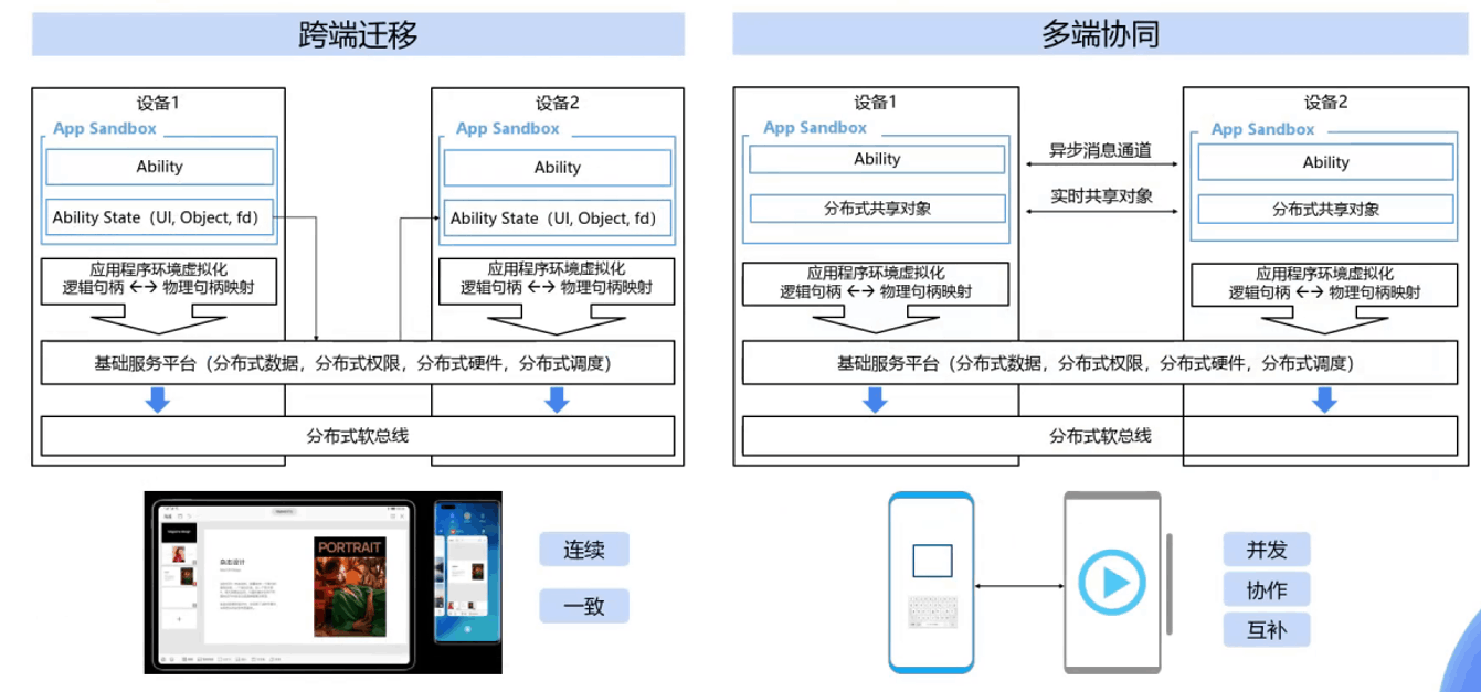分布式能力是 HarmonyOS 的最大特征,也是其面向万物互联时代的核心需求。应用程序可在多个终端间进行分合与流转,带来自然、便捷的跨端体验。