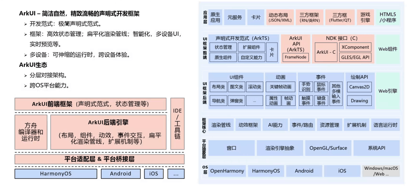 - ArkUI:提供声明式响应式UI框架,支持高效界面开发和跨平台迁移。