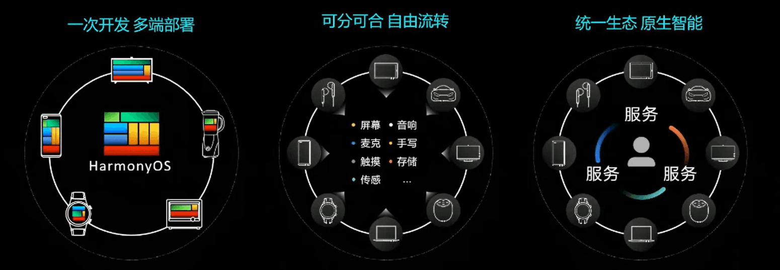 HarmonyOS在万物互联场景下的核心能力,体现了系统在多端协作、分布式流转和统一生态方面的技术优势。其特有能力主要包括三个方面:一次开发多端部署、可分可合自由流转、统一生态与系统智能化支持。