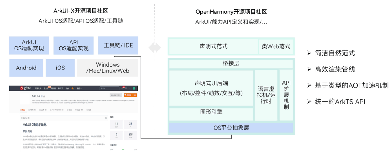 ArkUI-X 的设计不仅局限于 HarmonyOS 生态,还具备 跨OS平台扩展性。依托鸿蒙的多内核架构与自研编译链(Ark Compiler),ArkUI组件可在不同内核(如LiteOS、Linux、Android内核)上运行,确保代码复用与行为一致。其跨平台实现机制包括: