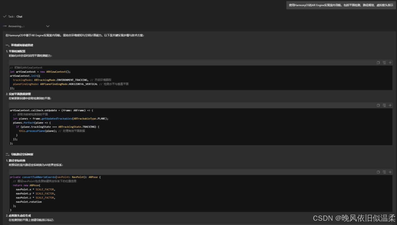 第一个让我惊喜的功能就是智能问答。与其他通用AI助手不同,CodeGenie的问答能力是深度绑定HarmonyOS技术文档的。