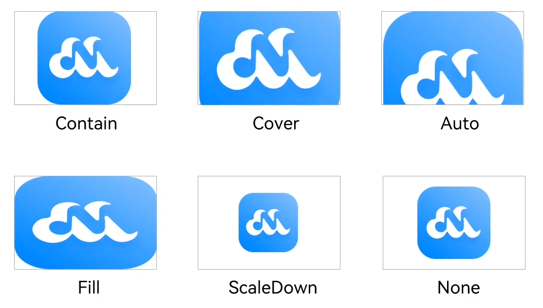 讲师通过示例展示了如何为 Image 设置宽高、外边距(margin),并讲解了关键属性 objectFit 的不同取值效果,例如: