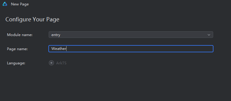 - 输入页面名称(如:Weather)