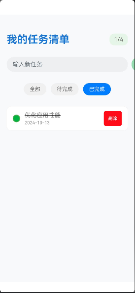 状态切换:点击任务后切换 completed 状态,实现待办/已完成切换。
