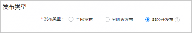 3. 在“版本信息”页面的“发布类型”区域,选择“非公开发布”(注意:此时会看到“全网发布”“分阶段发布”“非公开发布”三个选项,需精准勾选);
