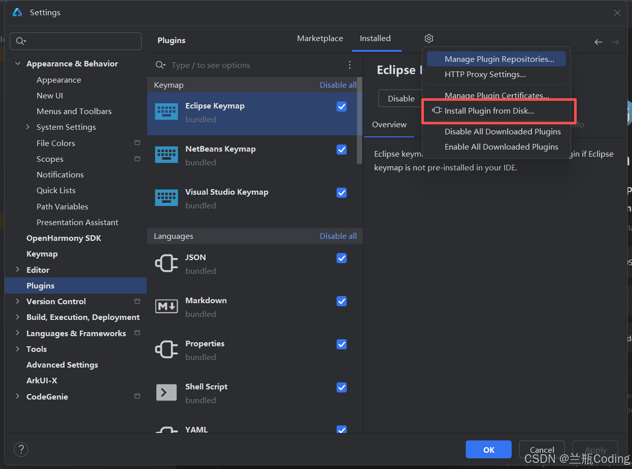 接着,我便打开DevEco Studio,进行该插件安装,如下是具体的安装步骤: