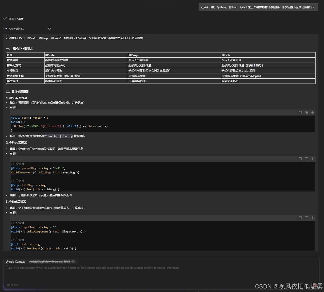 "@State装饰器就像给变量加了一个'监听器'。当你改变这个变量的值时,界面会自动刷新。就像你在Figma里改变一个组件的属性,画布会立刻更新一样。