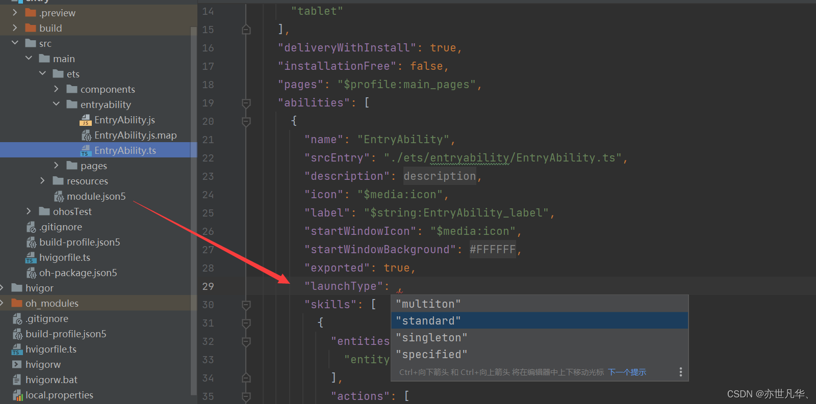 standard启动模式:每次启动UIAbility都会创建一个新的实例,在任务列表中可能存在一个或多个相同的UIAbility。修改module.json文件,进行如下配置更改UIAbility启动模式: