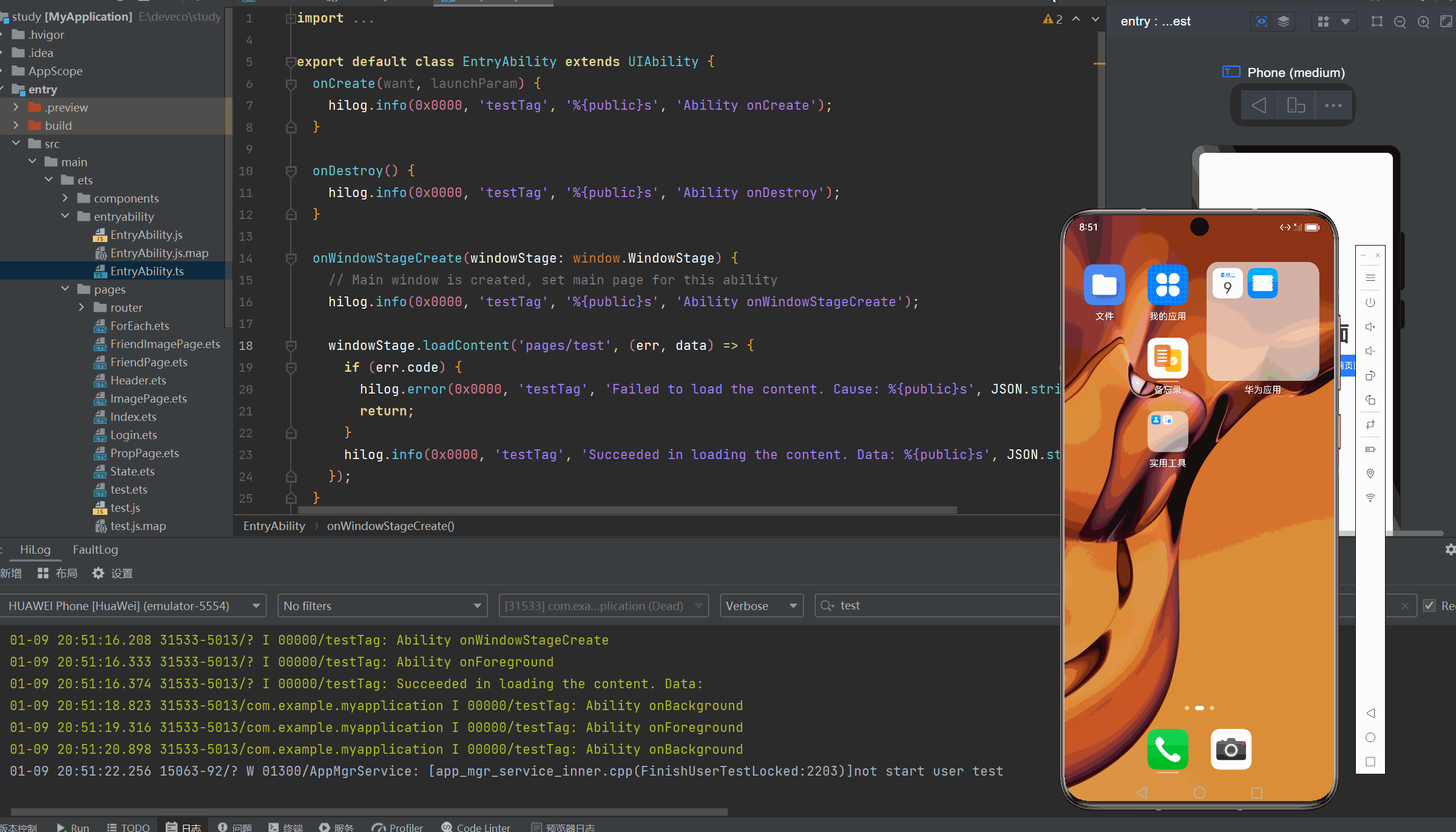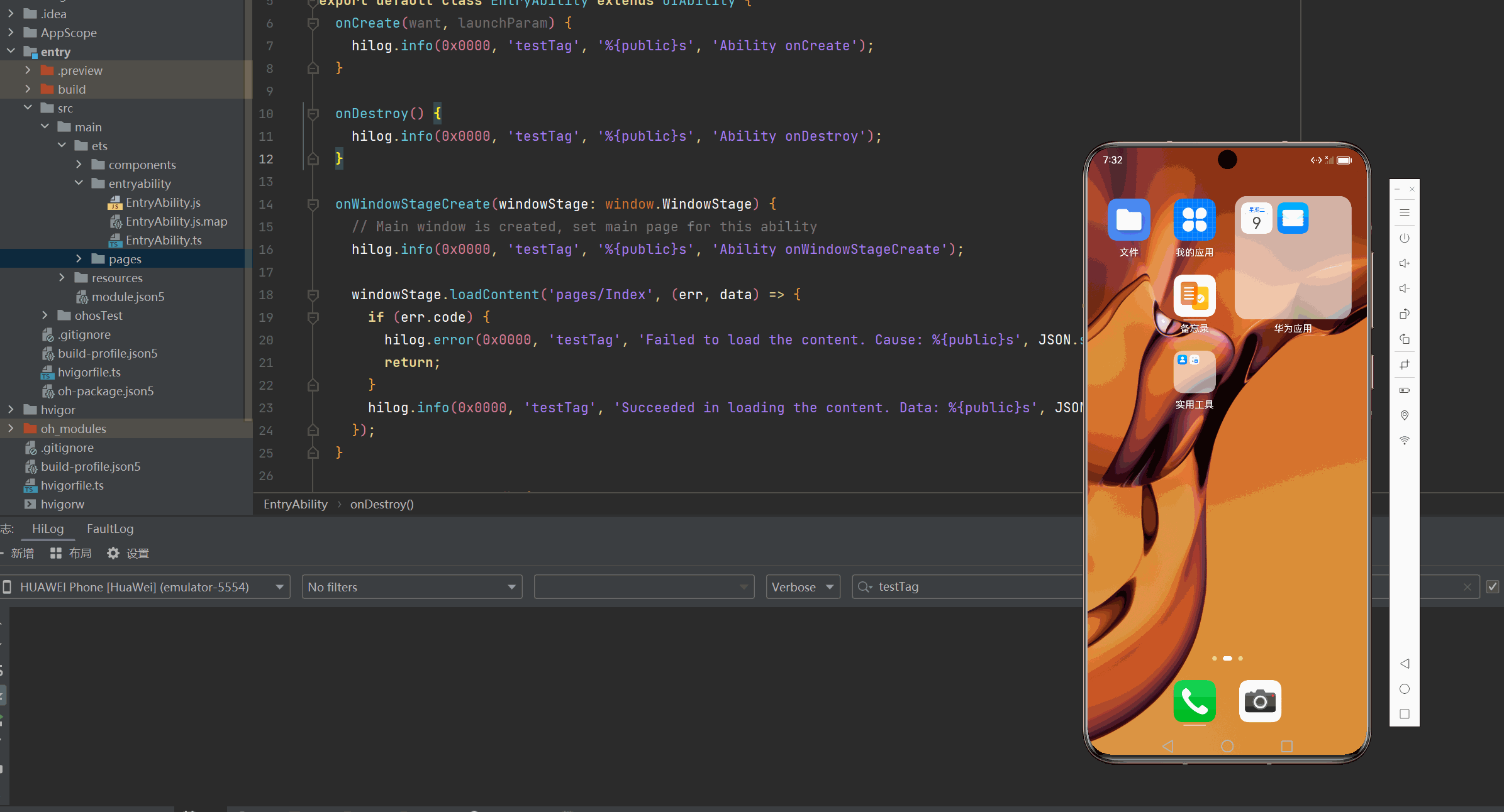 这里我们通过本地模拟器搭配控制台来演示 UIAbility生命周期 运行的流程: