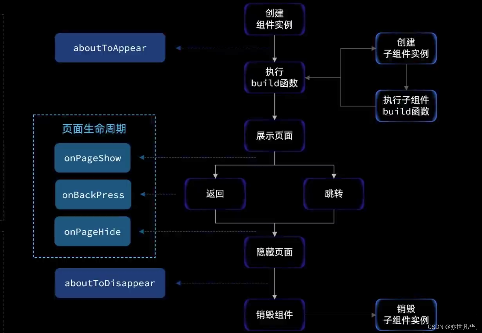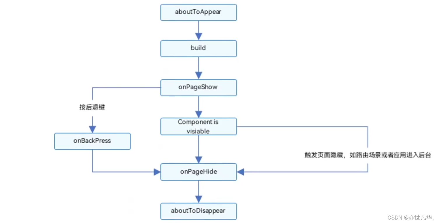 生命周期流程如下图所示,下图展示的是被@Entry装饰的组件(首页)生命周期。
