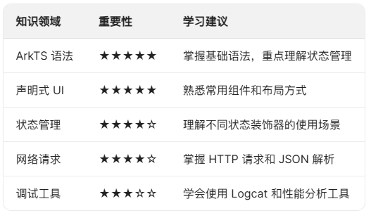 基础入门阶段掌握开发环境搭建学习 ArkTS 基础语法实现简单 UI 界面技能提升阶段掌握数据处理和网络请求学习状态管理和动画效果开发完整功能模块项目实战阶段开发综合应用项目学习性能优化和调试完成应用上架职业发展阶段深入学习分布式能力掌握高级特性和架构设计形成个人技术专长鸿蒙开发为零基础学习者提供了友好的入门途径,也为有经验的开发者提供了新的发展机遇。成为一名鸿蒙开发者,不仅需要学习技术知识,更需