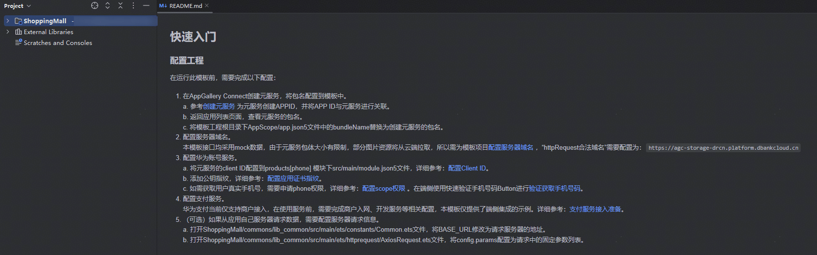 打开模板工程,根据README说明中的快速入门章节,将自己的应用信息配置在模板工程内,即可运行并查看模板效果。