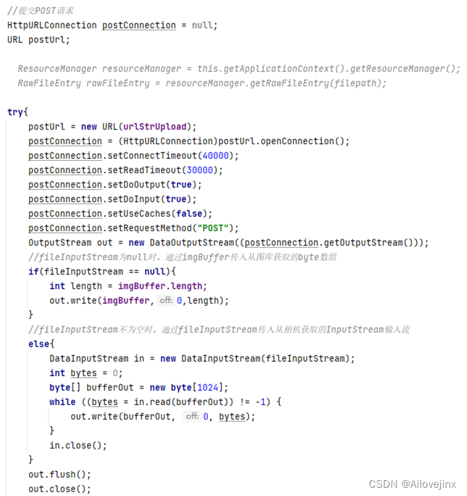 上传图片[4]:用户点击“迁移”按钮,程序将选取的照片读取为FileInputStream类型数据,转换为byte字节流,或直接读取字节流形式的图片。随后,启动一个新的子线程,请求HTTP通信,请求方法为POST,以上传图片字节流。