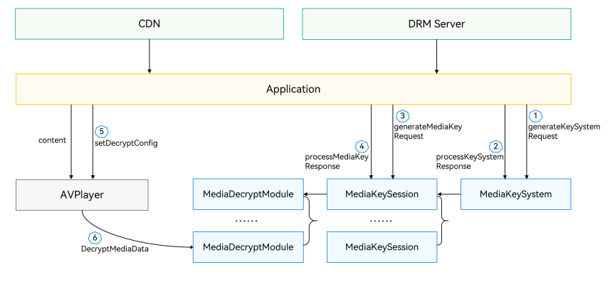 - 将 MediaKeySession 设置到 Media Kit 或 AVCodec Kit,用于支持 DRM 节目解密。