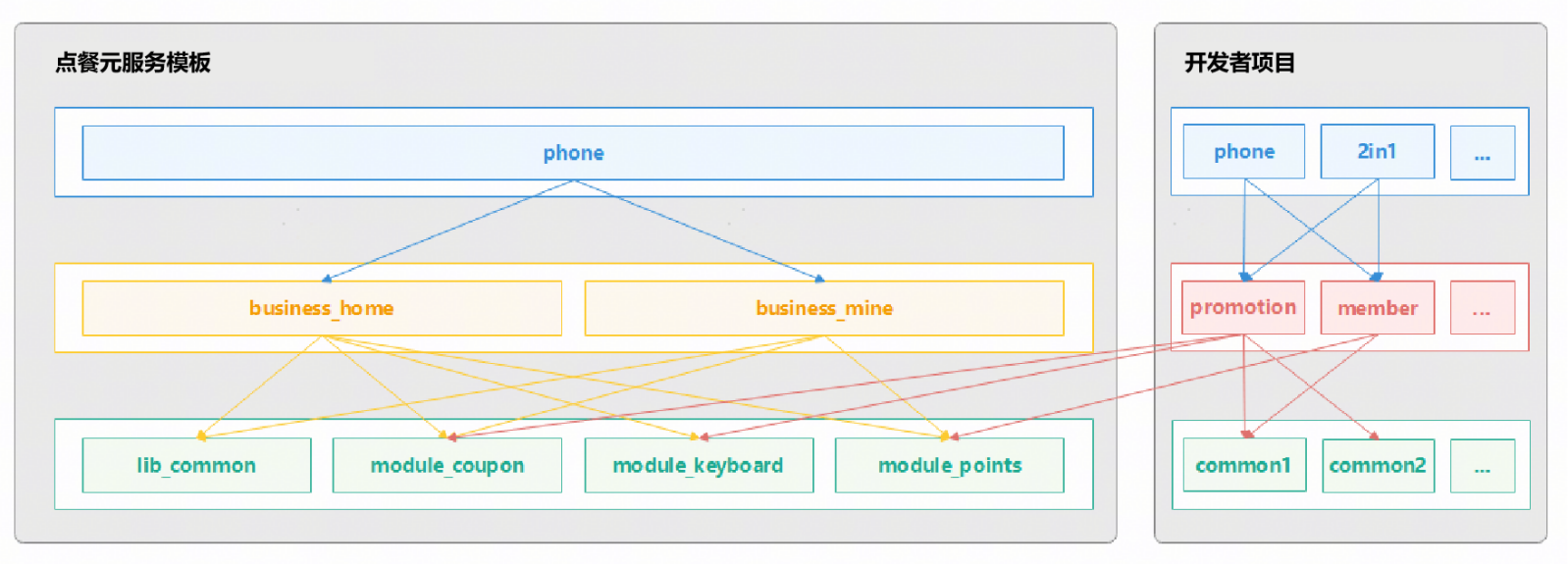 - 公共能力层:存放公共能力,包括公共UI组件、数据管理、外部交互和工具库等共享功能。