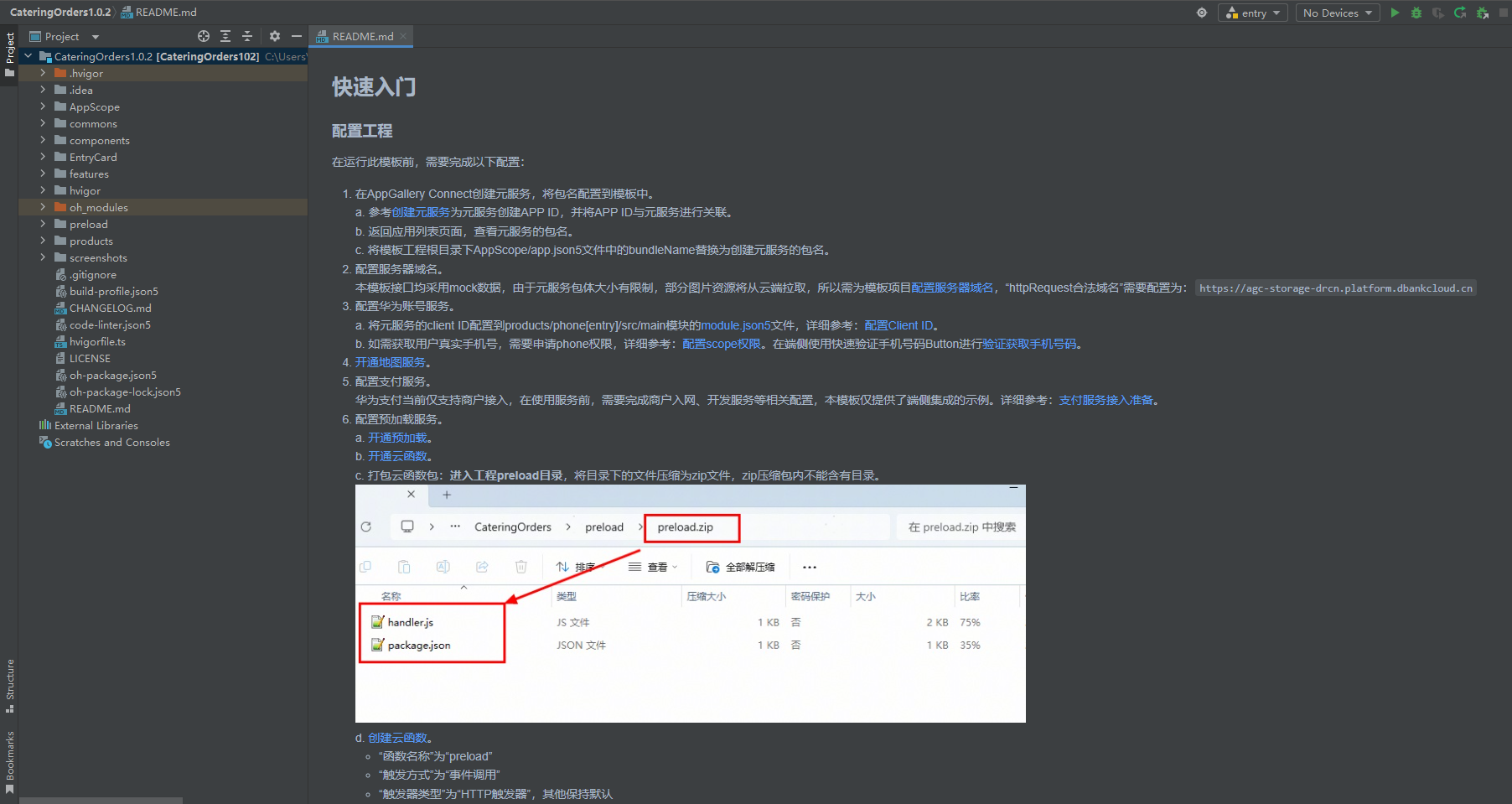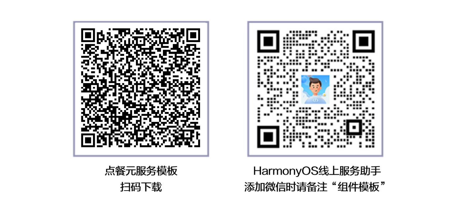 - 本模板为餐饮点餐类元服务提供了常用功能的开发样例,已集成预加载、华为账号、地图、华为支付、通话等服务,只需做少量配置和定制即可快速实现页面的快速加载、华为账号的登录、商家位置定位导航、购买餐饮和联系商家等功能。