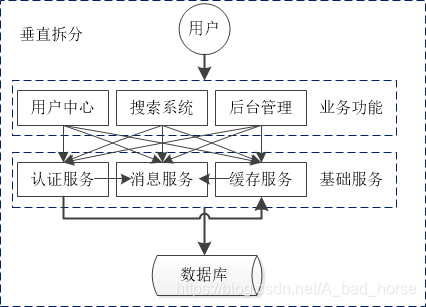 “用户中心”,“搜索服务”都要访问数据库增删改查,造成了代码重复,重复开发引起资源浪费。
