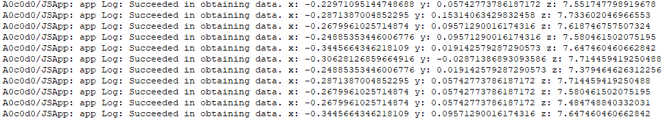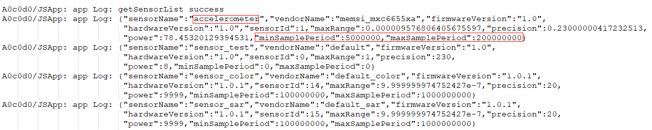 sensor.once(sensor.SensorId.ACCELEROMETER, (data: sensor.AccelerometerResponse) => { console.info("Succeeded in obtaining data. x: " + data.x + " y: " + data.y + " z: " + data.z); });