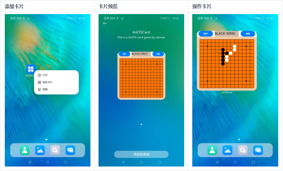 - 卡片使用方:如上图中的桌面,显示卡片内容的宿主应用,控制卡片在宿主中展示的位置。
