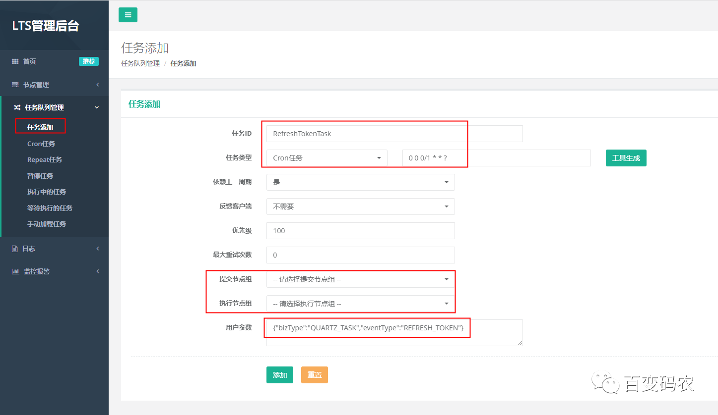 LTS-Admin控制台手动添加提交Cron任务(对应配置即可)
