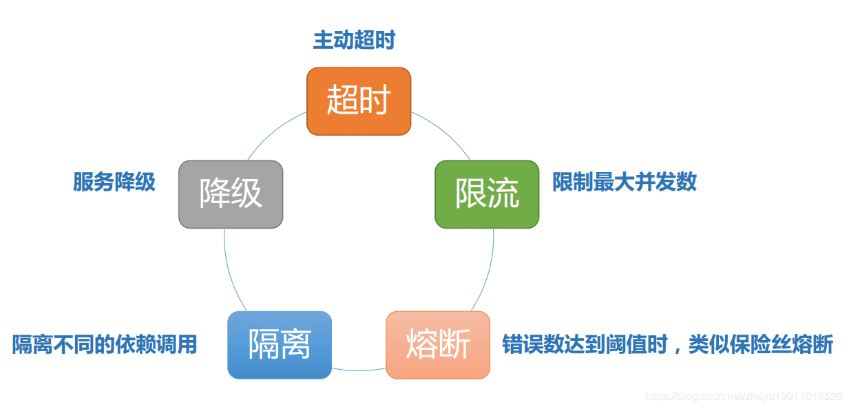 在高并发环境下,服务之间的依赖关系导致调用失败,解决的方式通常是: 限流->熔断->隔离->降级, 其目的是