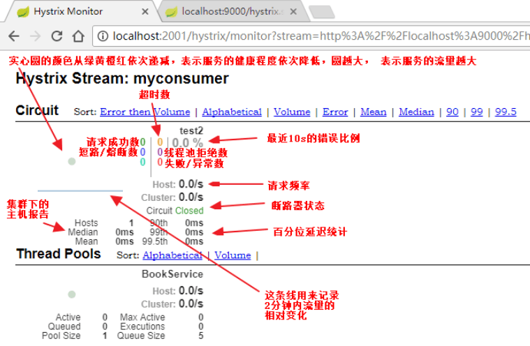 - 请求熔断: 当Hystrix Command请求后端服务失败数量超过一定比例(默认50%), 断路器会切换到开路状态(Open). 这时所有请求会直接失败而不会发送到后端服务. 断路器保持在开路状态一段时间后(默认5秒), 自动切换到半开路状态(HALF-OPEN).