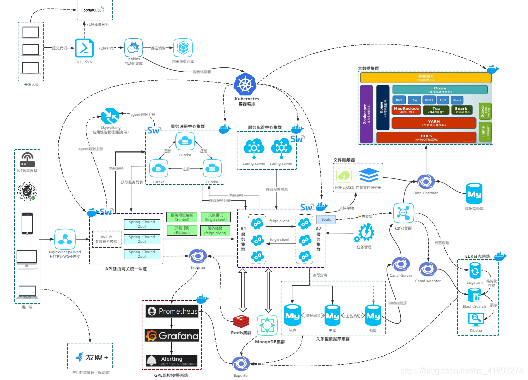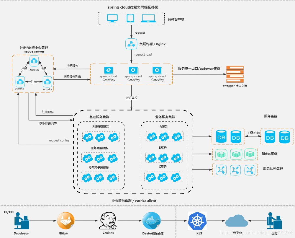 微服务架构,主要是中间层分解,将系统拆分成很多小应用(微服务),微服务可以部署在不同的服务器上,也可以部署在相同的服务器不同的容器上。当应用的故障不会影响到其他应用,单应用的负载也不会影响到其他应用,其代表框架有 Spring cloud、Dubbo 等。