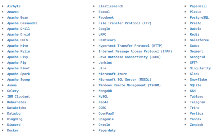Airflow官网:http://airflow.apache.org/,Airflow支持的任务调度类型如下: