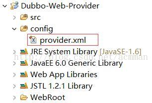 然后我们创建一个原文件夹config,用于存放Spring的配置文件,然后在该文件夹下创建provider.xml配置文件: