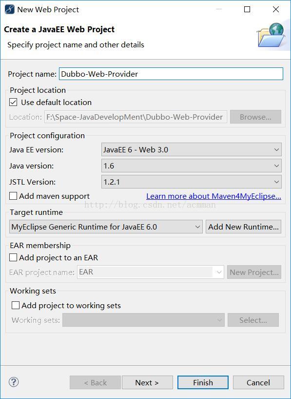 首先我们在MyEclipse中创建一个服务提供者的WebProject,名为Dubbo-Web-Provider: