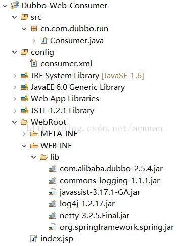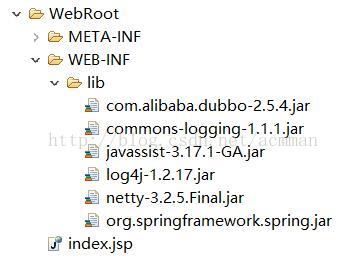 在MyEclipse中创建一个服务提供者的WebProject,名为Dubbo-Web-Consumer,添加的依赖与服务提供者一样: