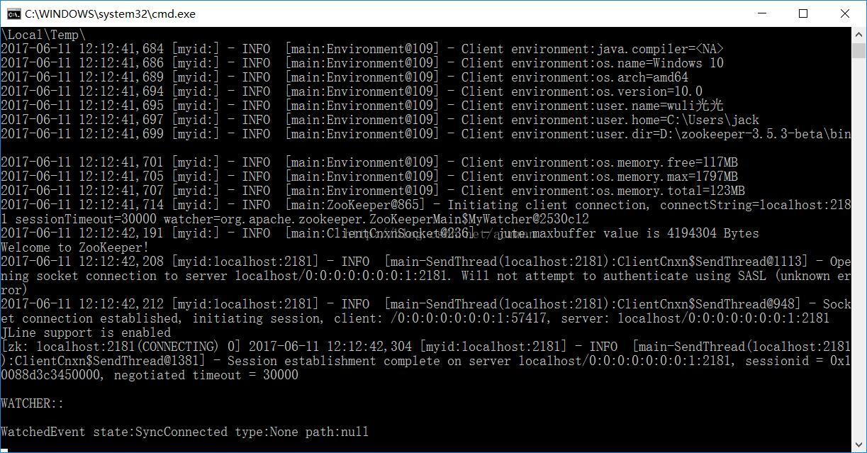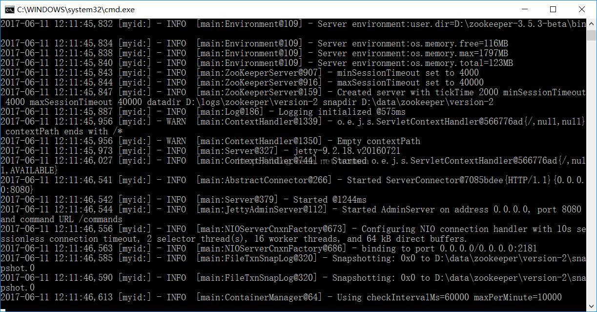 然后双击bin文件夹下的zkServer.cmd启动注册中心服务: