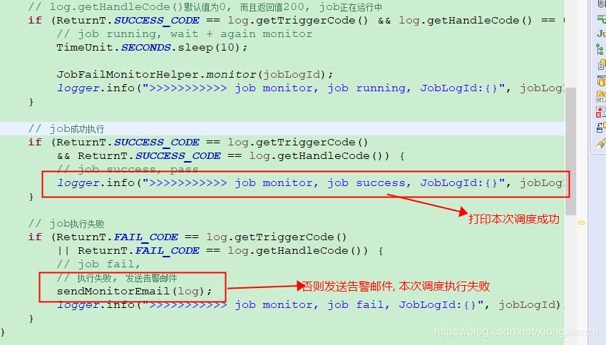 && ReturnT.SUCCESS_CODE == log.getHandleCode()) {