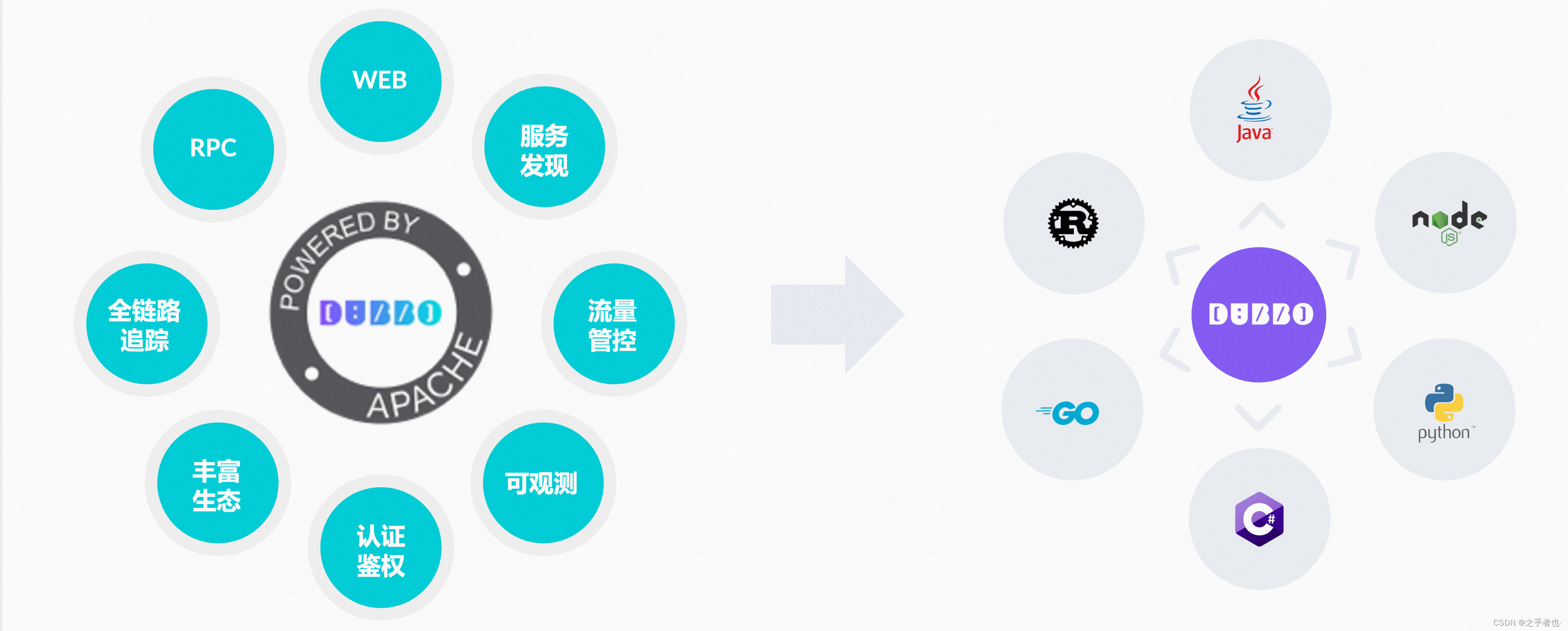 Apache Dubbo 是一款微服务开发框架,它帮助解决微服务开发中的通信问题,同时为构建企业级微服务的提供服务治理能力,Dubbo 不绑定编程语言,我们的目标是为所有主流语言提供对等的微服务开发体验。
