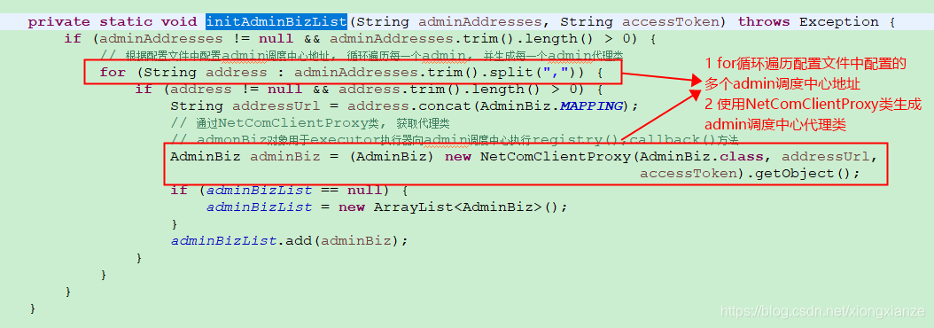 将生成的每个admin调度中心代理类, 放入adminBizList数组, 以供以后调用.