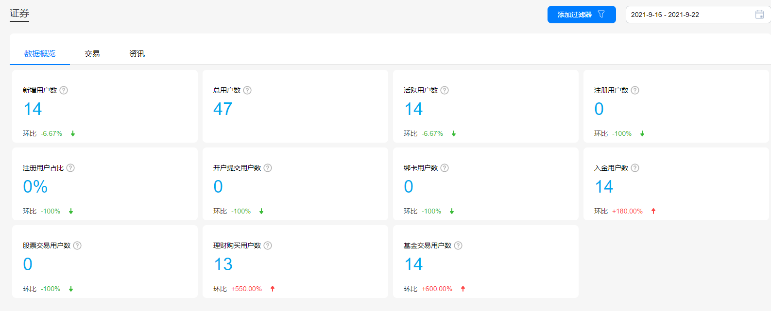证券行业分析报告:通过数据概览、交易、资讯三大模板内容,直观呈现当前产品整体运营概况。关注用户理财体验和资讯偏好,以提升产品体验为核心,帮助企业挖掘更多差异化营销场景。