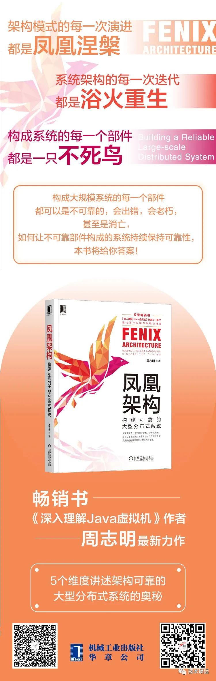 购买周志明博士最新力作《凤凰架构》,可以在下图扫码或者直接通过查看原文跳转,祝阅读愉快!