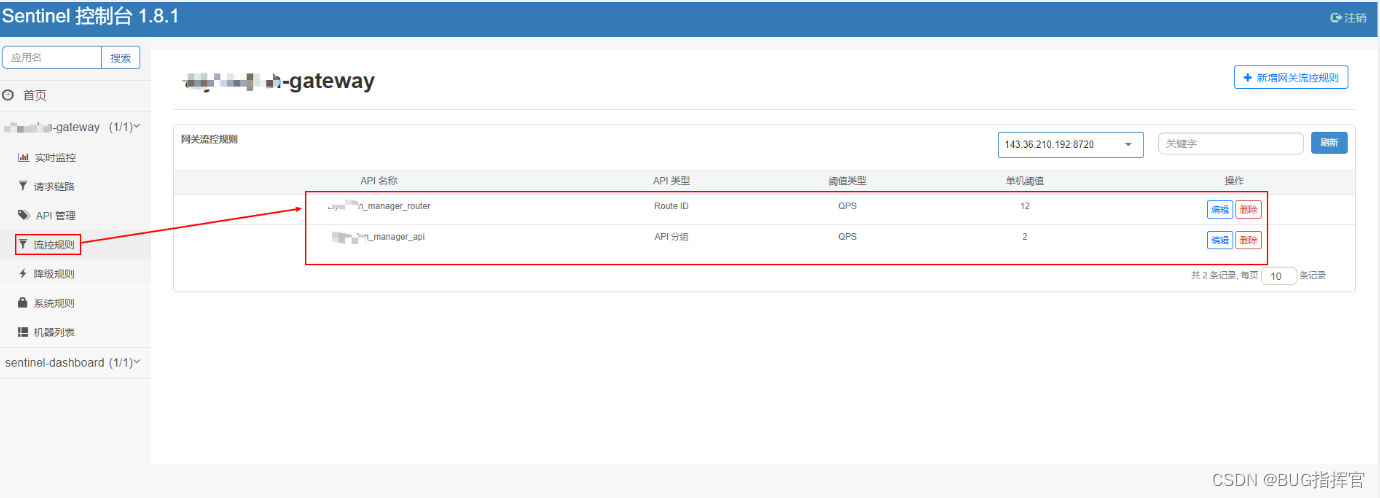 说明:具体的配置参数说明请参考官网地址https://github.com/alibaba/Sentinel/wiki/%E7%BD%91%E5%85%B3%E9%99%90%E6%B5%81