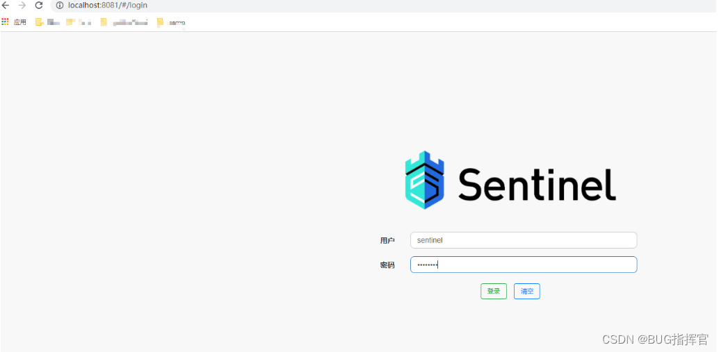 ③登录sentinel客户端,默认用户名和密码都是sentinel