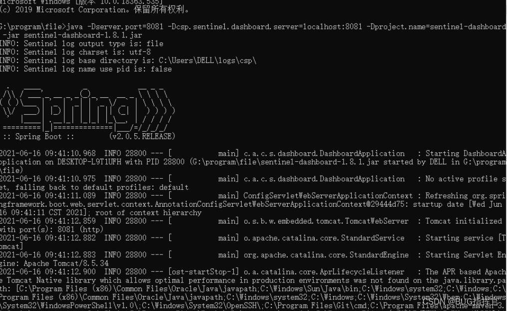 ②安装sentinel客户端命令:java -Dserver.port=8081 -Dcsp.sentinel.dashboard.server=localhost:8081 -Dproject.name=sentinel-dashboard -jar sentinel-dashboard-1.8.1.jar -Dcsp.sentinel.app.type=1