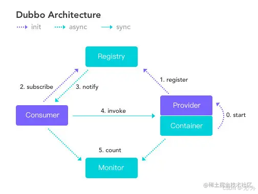 - 而Remoting实现是Dubbo协议的实现,如果你选择RMI协议,整个Remoting都不会用上,Remoting内部再划为Transport传输层和Exchange信息交换层,Transport层只负责单向消息传输,是对Mina、Netty、Grizzly的抽象,它也可以扩展UDP传输,而Exchange层是在传输层之上封装了Request-Response语义。