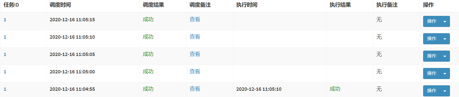 - 如果选择丢弃后续调度,所有任务都会调度成功,但是会执行失败。